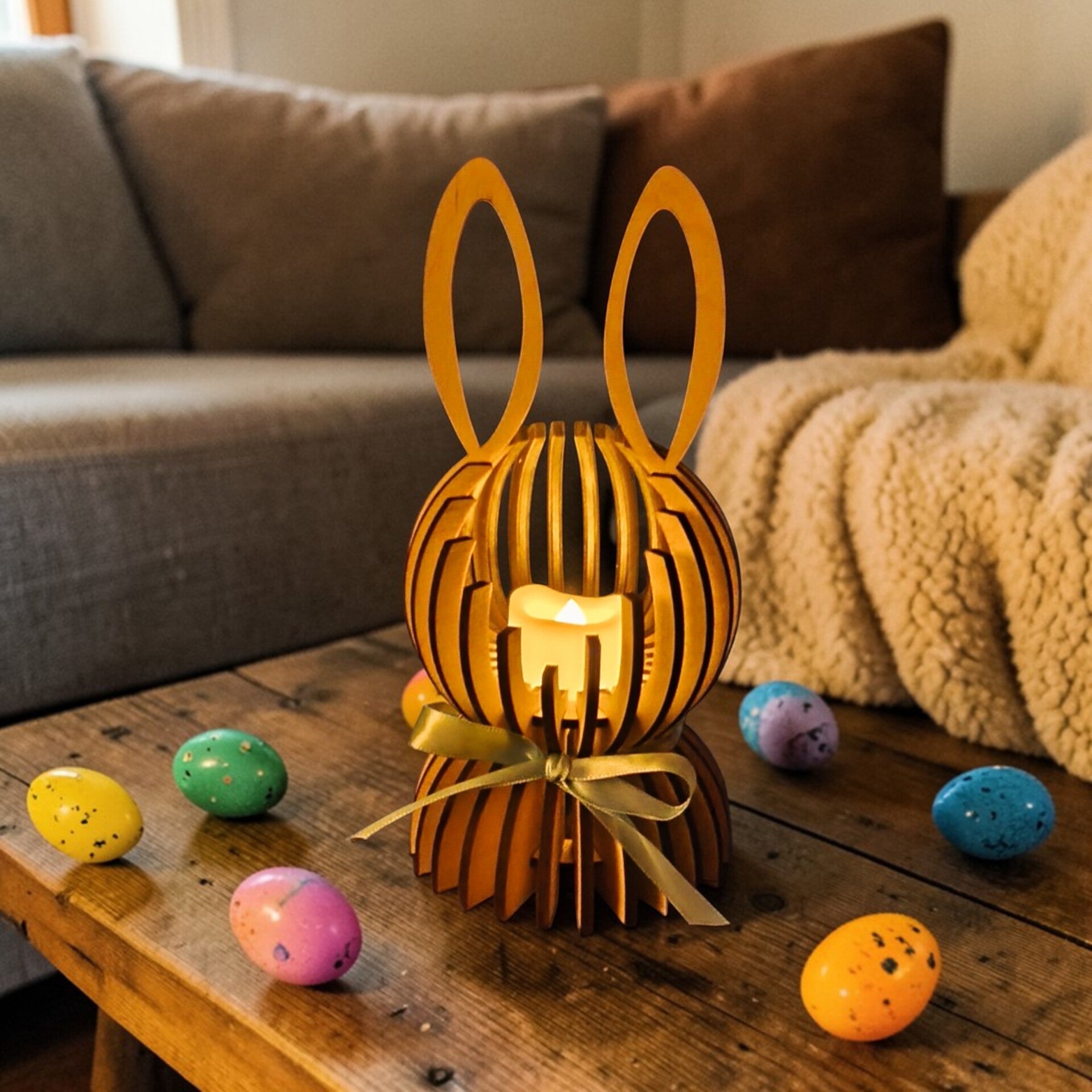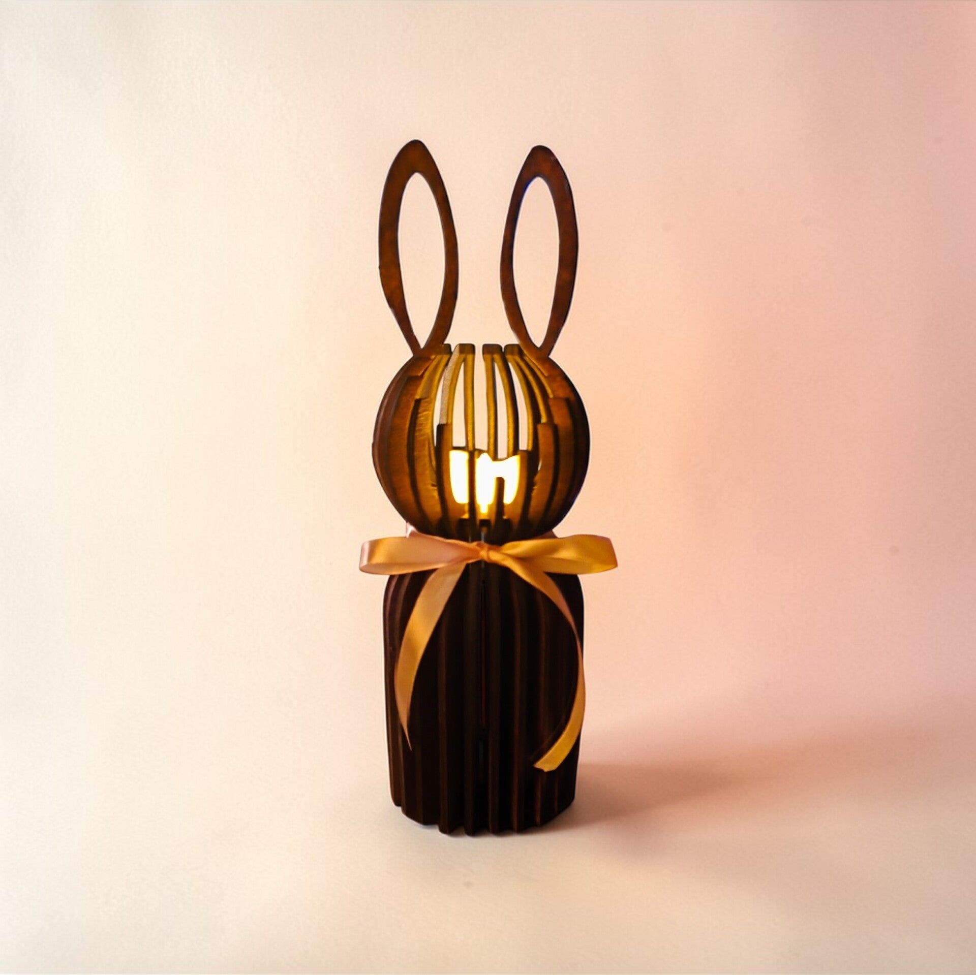 Photophore lapin en bois découpé laser – décoration lumineuse artisanale
